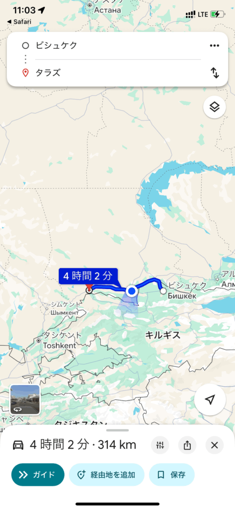 ぼったくりのようなタクシーしか見つからなかったのですが「シムケント!シムケント!」と色んな人に連呼して聞いていたらようやく良心的な乗り合いタクシーが見つかりました。値段は5000kzt(約1400円)。無事シムケントにたどり着きました。