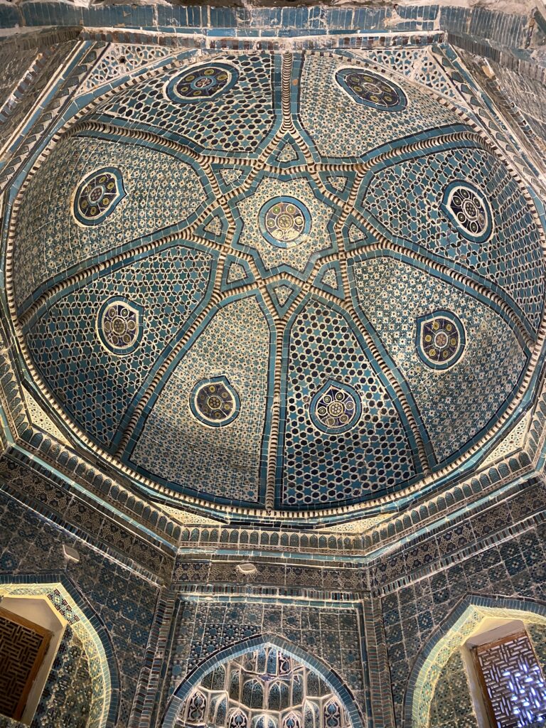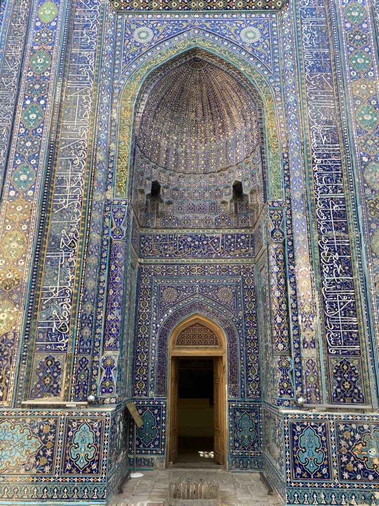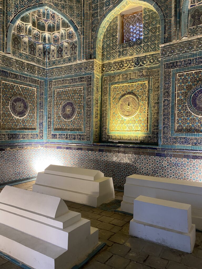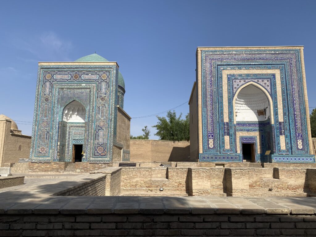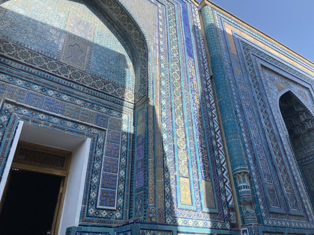 まずはシャーヒズィンダ廟群へ。ここはティムールゆかりの人々の霊廟が立ち並ぶ場所で、サマルカンドブルーを最も実感できる場所を言われています。