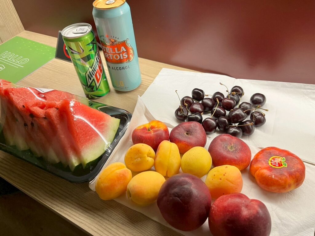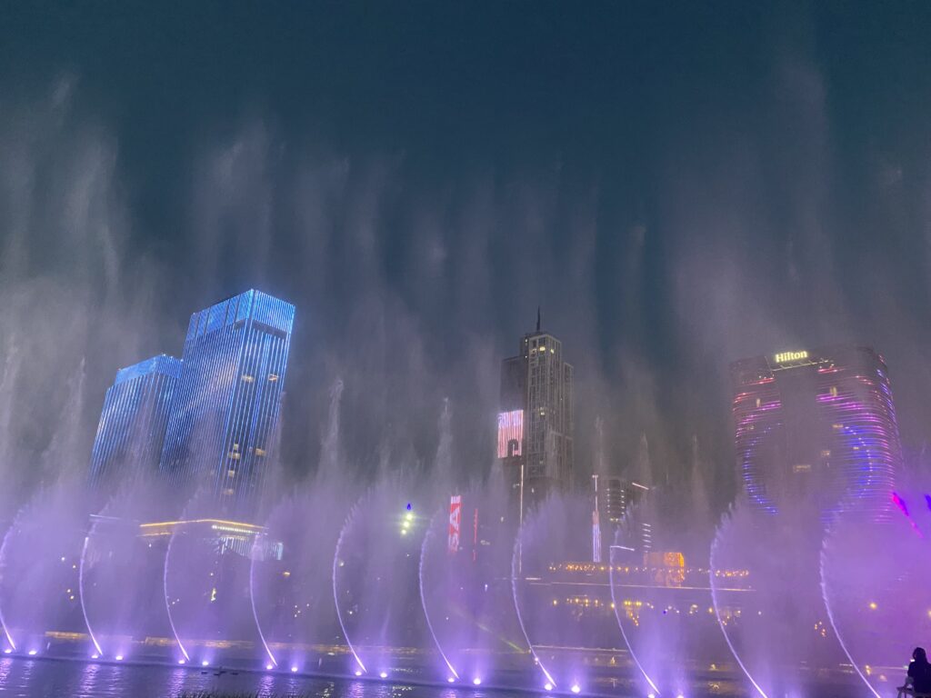噴水ショーはかなり楽しめました。終わった後のビルのライトアップを楽しみつつ夕飯はホテルでフルーツを食べました。