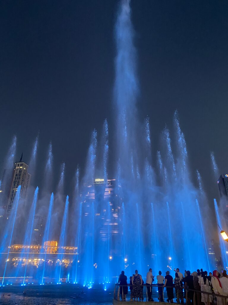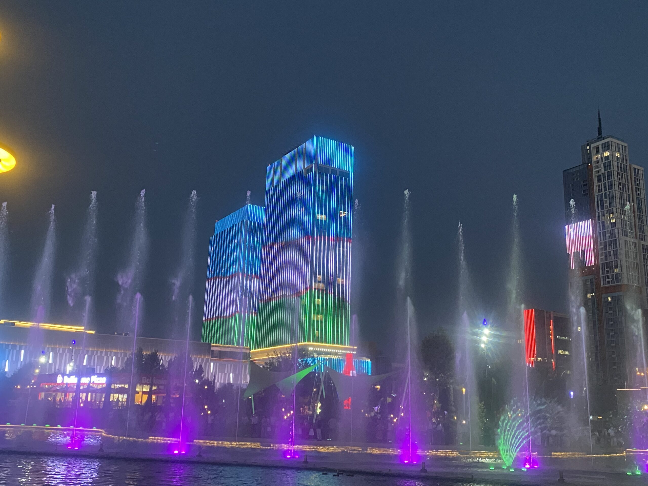 周囲のビルも噴水ショーに合わせてライトアップされます。