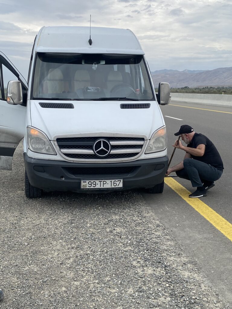 その後キナルグ村に向かいますが途中タイヤがパンクするアクシデント。