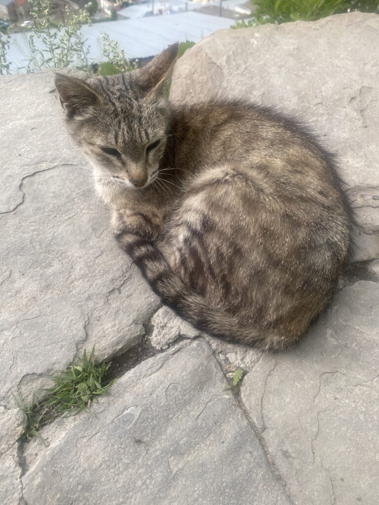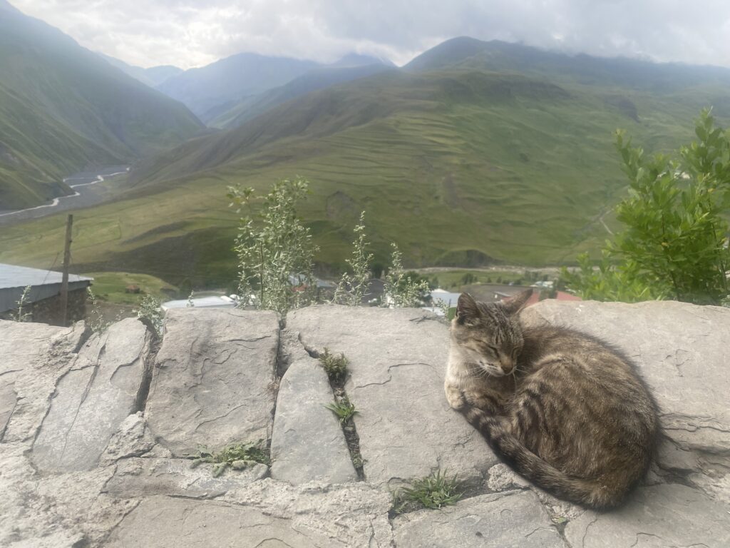 キナルグ村にも猫がいました。絶景と猫が映える。