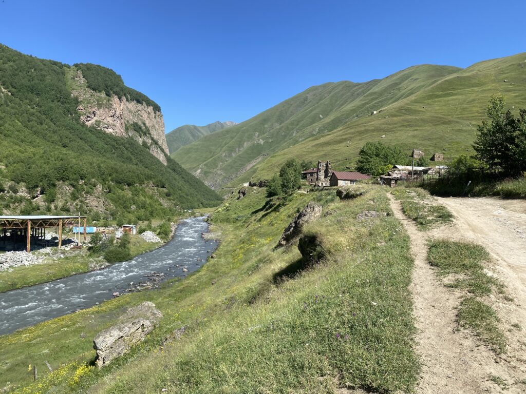 見張り塔が見えてきました。見張り塔の側を通る場合、ケトリシ村は川の対岸なのですが対岸から見る景色も良いです。