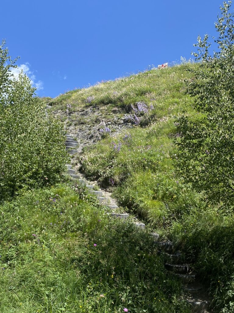 カフェを通り抜けるとタイヤでできた階段があるので登っていきます。