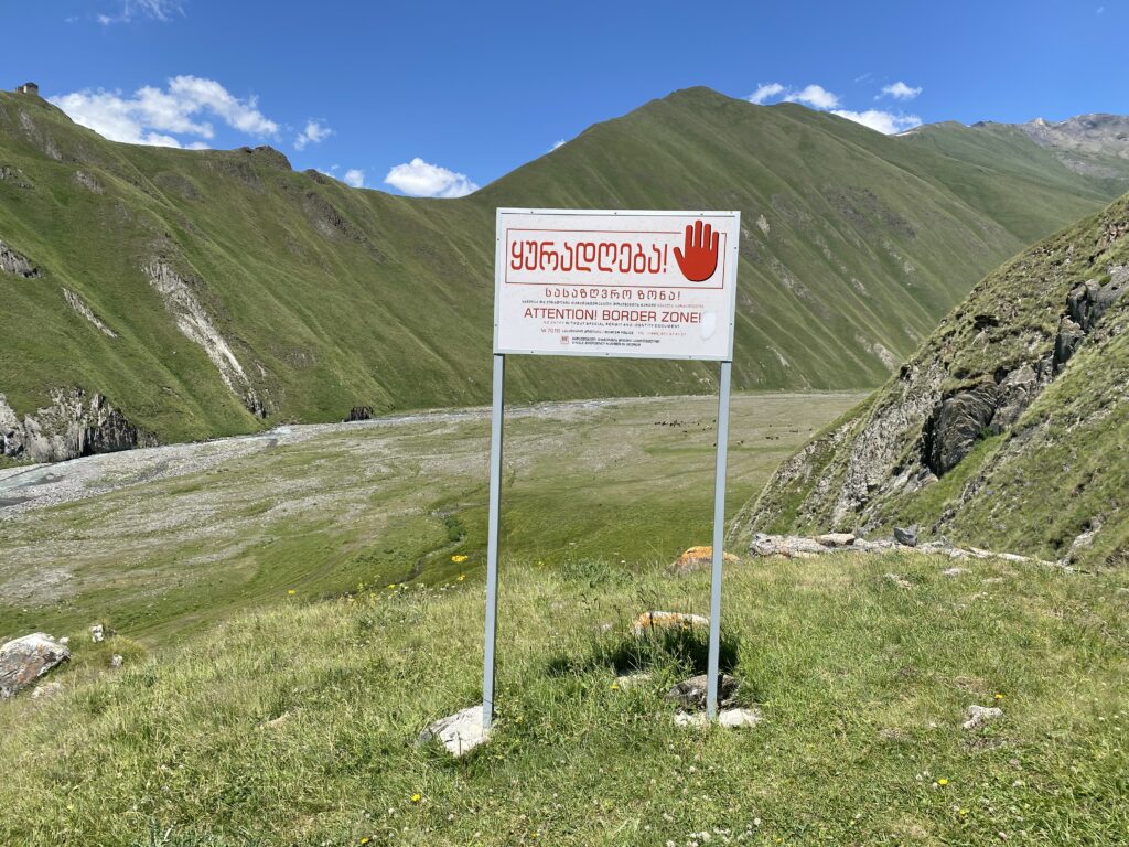 この先の道は南オセチア共和国との国境緩衝地帯。旅行者は行くことができません。