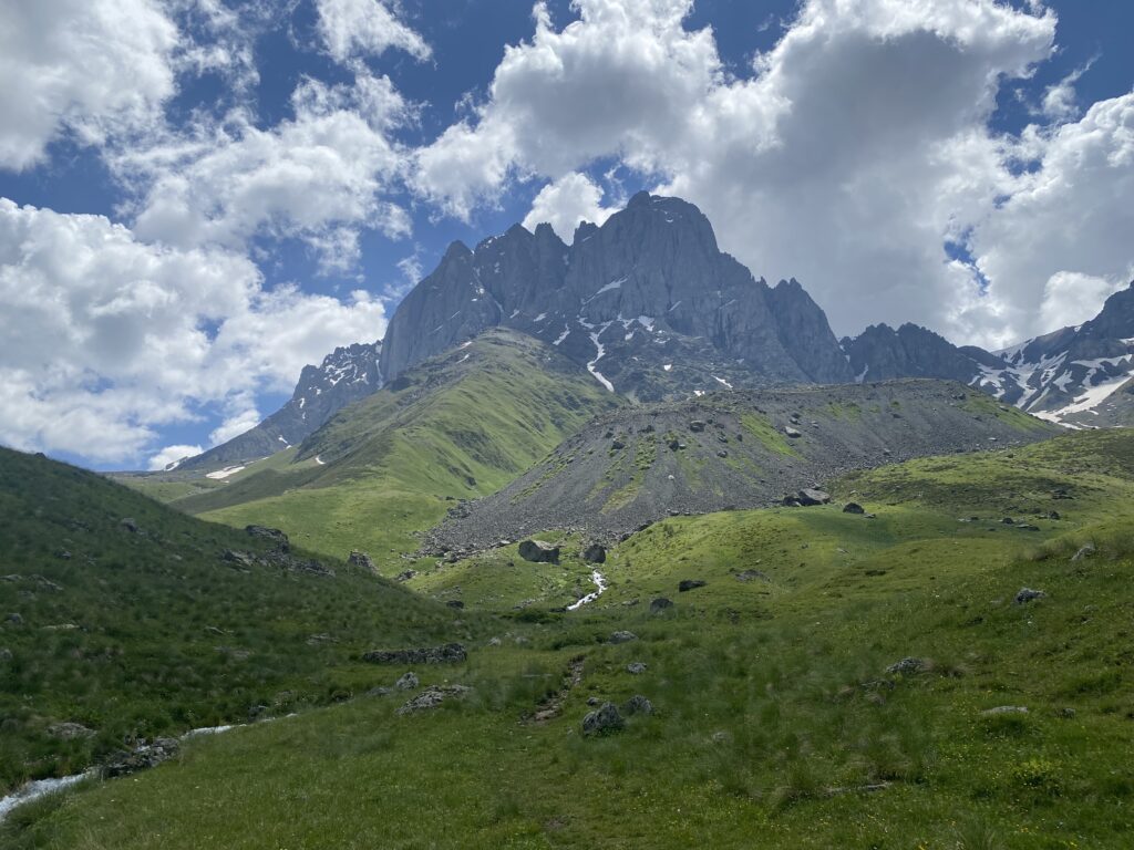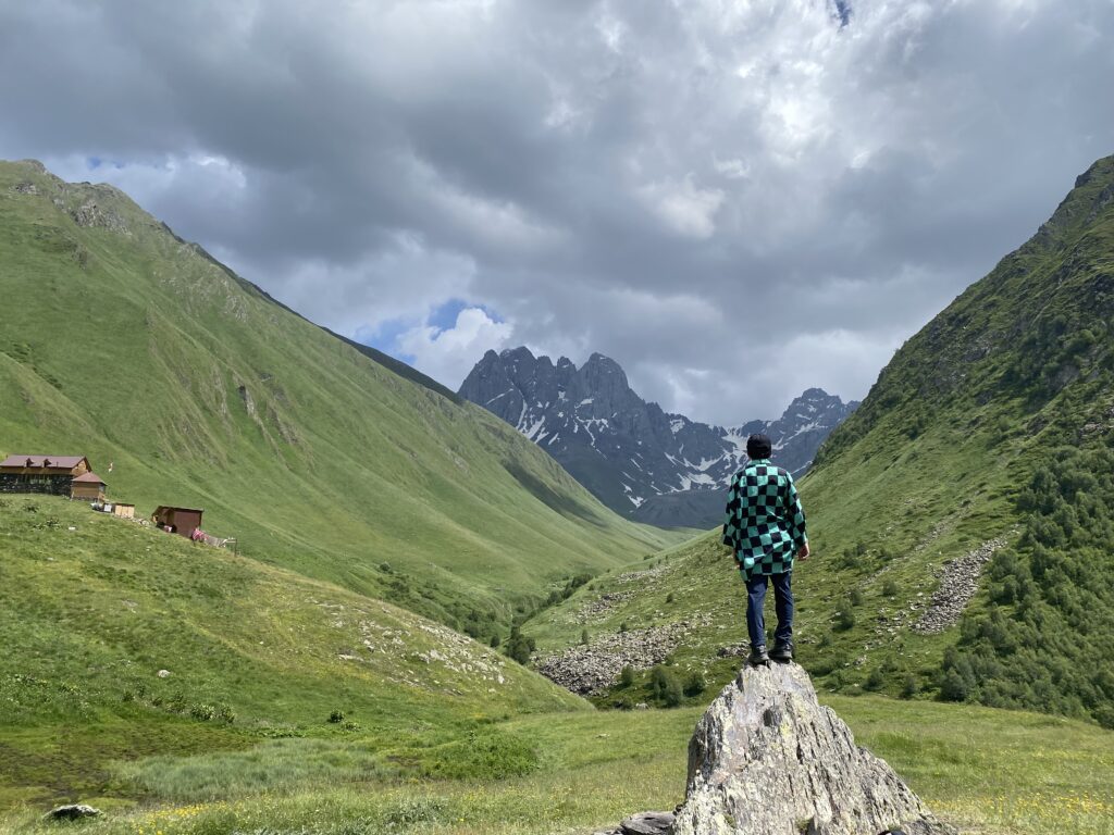 最後に岩の上からチャウヒ山を見治めてジュタバレーのトレッキングは終了。